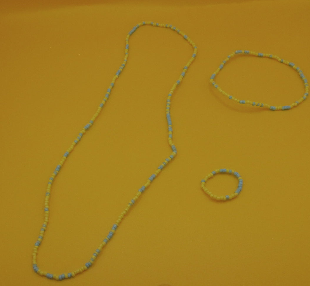 Sun & Sea Set from the Summer Days Collection brings the perfect blend of bright blue skies and golden sunshine to your accessories. This matching set includes a bracelet, necklace, and ring, each featuring vibrant blue and yellow tones that capture the fun and energy of summer. Bold, playful, and perfectly coordinated for your sunny-day style.