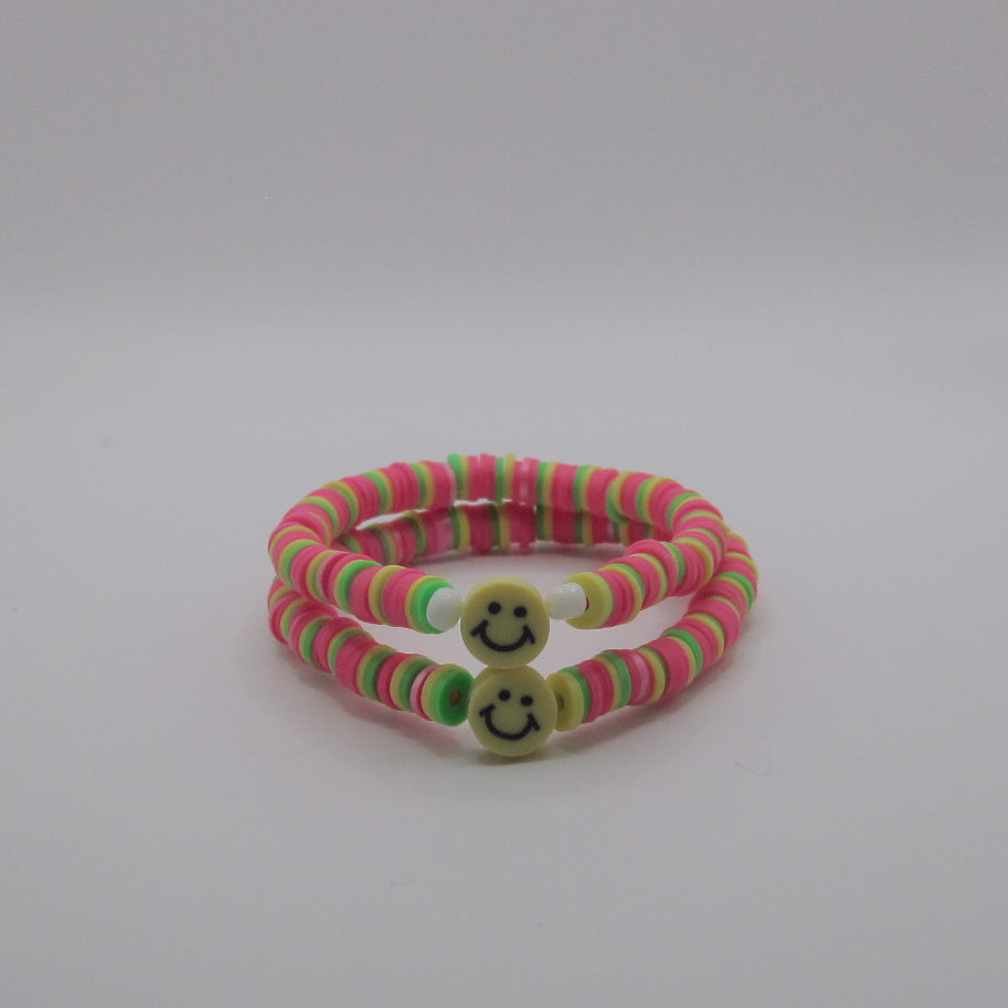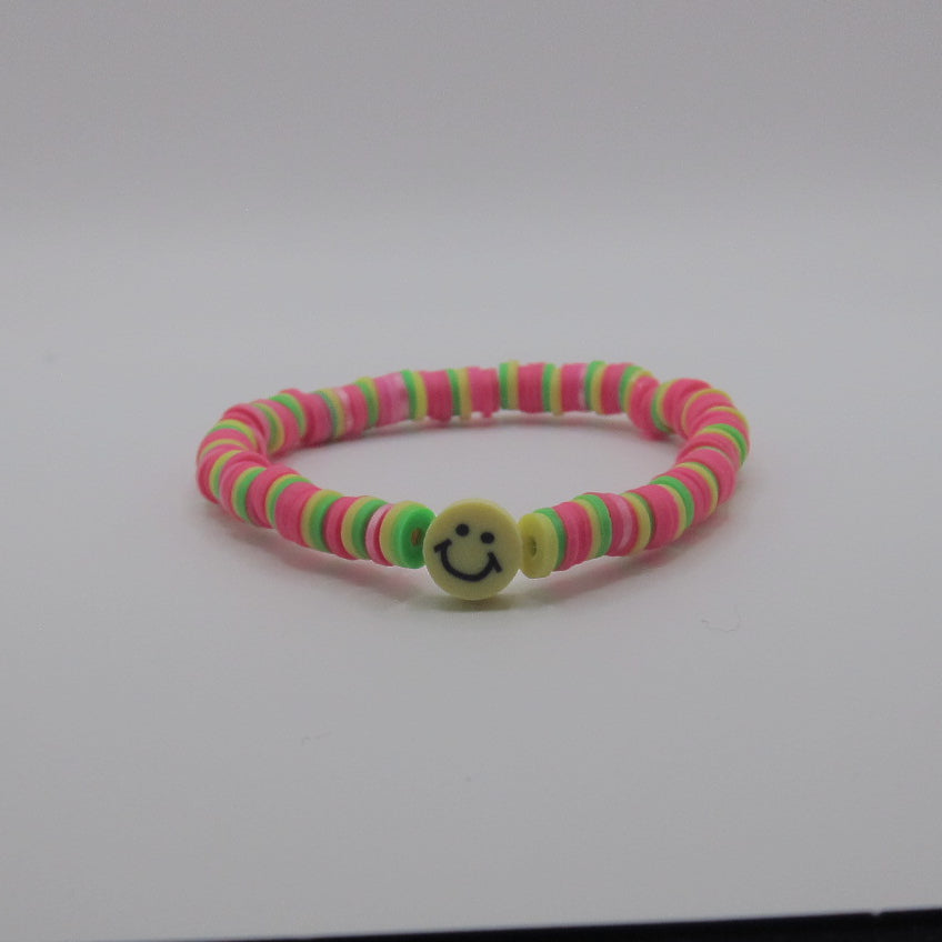 Sunny Side Up from the Summer Days Collection is bursting with joy and color! With playful pink, green, and yellow beads and a cheerful smiley face charm, it’s the perfect bracelet to brighten any summer outfit.